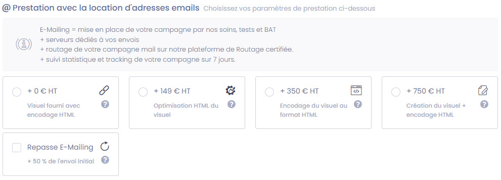 Le volume de contacts ciblés, ainsi que le tarif associé, vont alors s'actualiser dans le cartouche de validation, en fonction des paramètres sélectionnés.